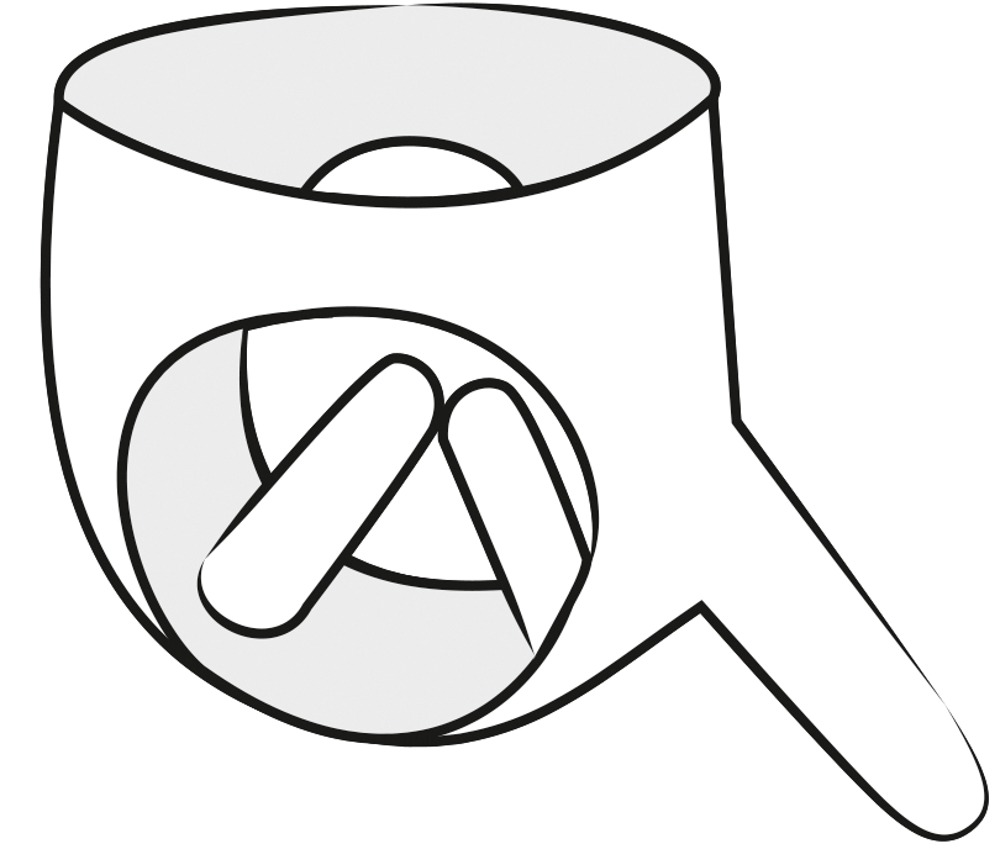 Außendildo 17 cm lang, Ø 4 cm, Innendildo 13 cm lang, Ø 3,5 cm. Latex (hergestellt unter der Verwendung von Naturkautschuklatex, der Allergien verursachen kann).