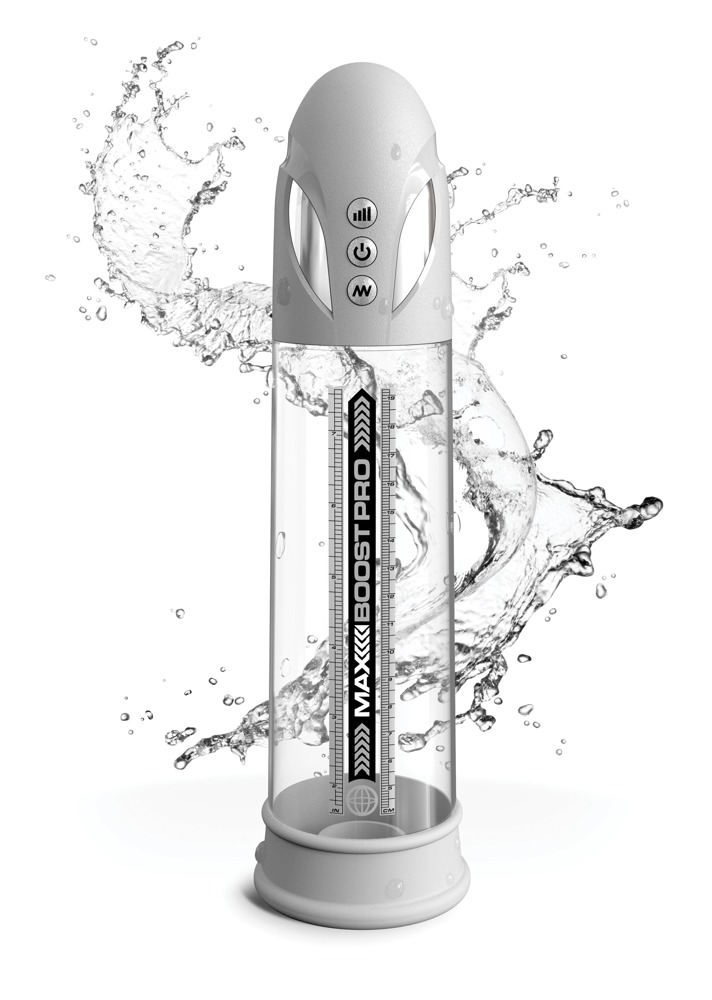 Transparente Penispumpe Max Boost von Pump Worx für alle Männer, die sich ein effektives Training für Penis und Potenz wünschen. Mit starker Saugkraft – stimulierend wie beim Blowjob. Entwickelt, um die Durchblutung und die Ausdehnung des Penisgewebes zu fördern, damit Erektionsstärke und -härte verbessert werden können.